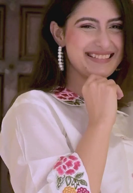 🌸 Embroidered Pant: Adds a subtle touch of elegance, completing the coordinated look.